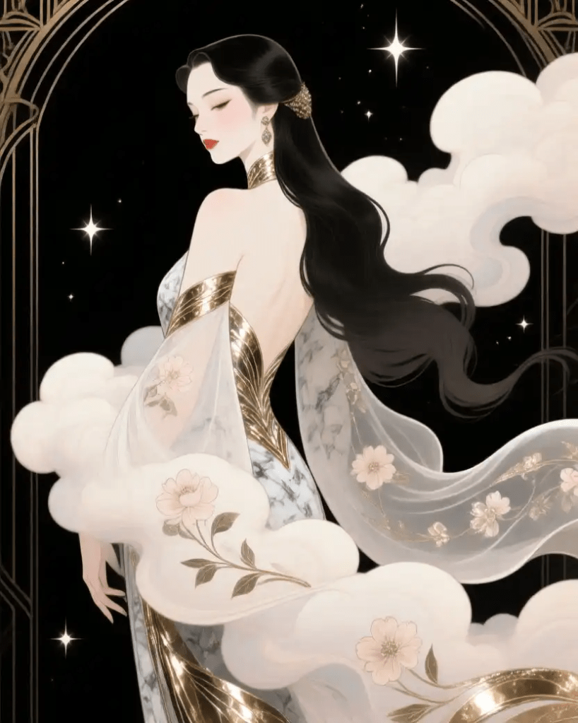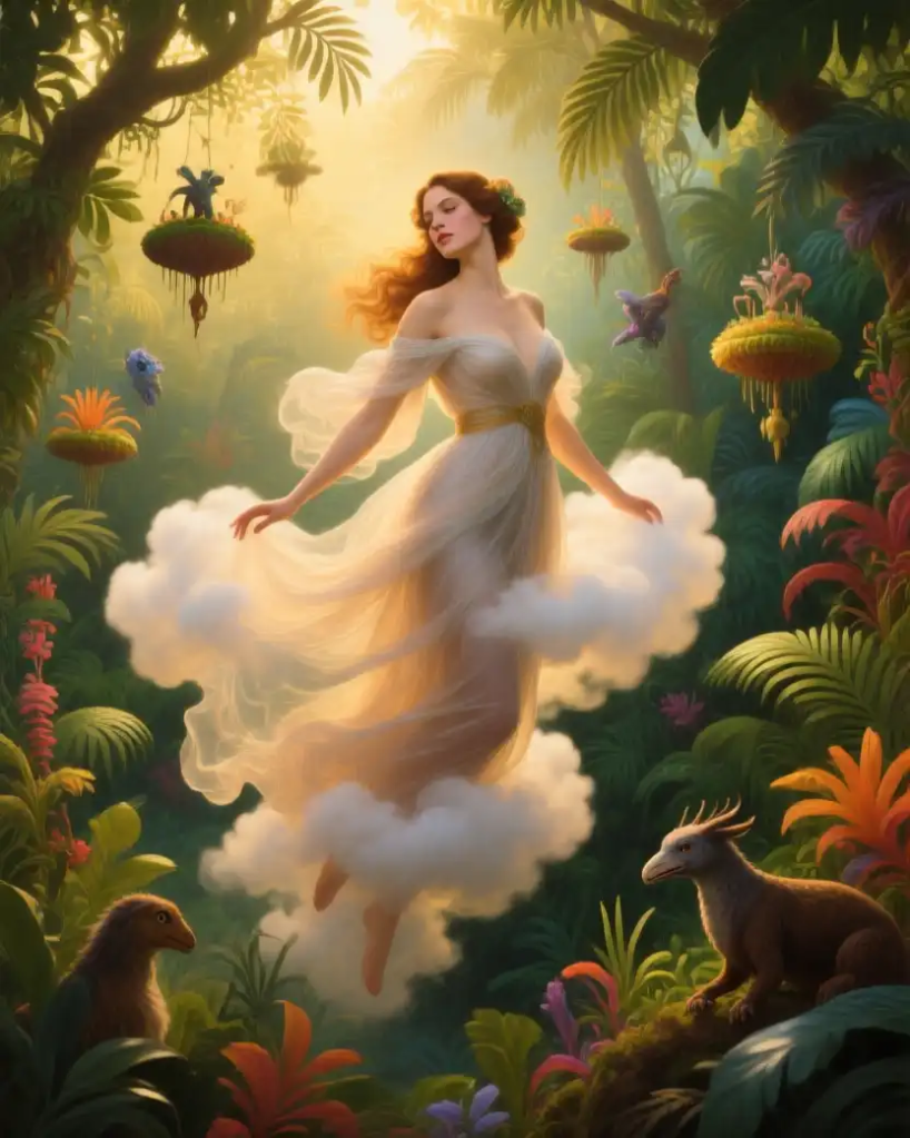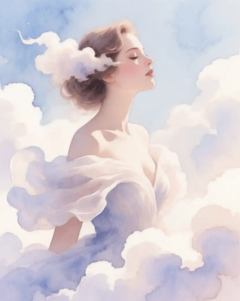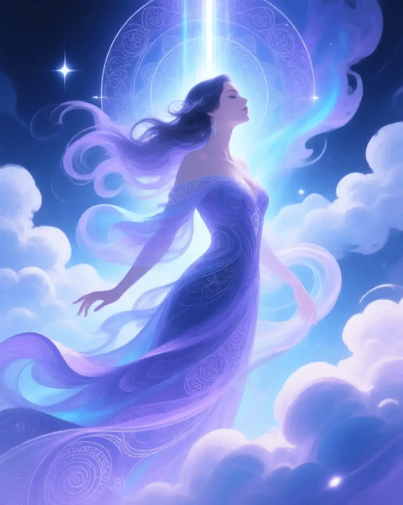 A mesmerizing beauty, blended with the divine smoke, adding a mysterious grace.