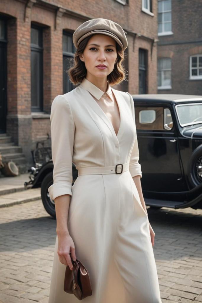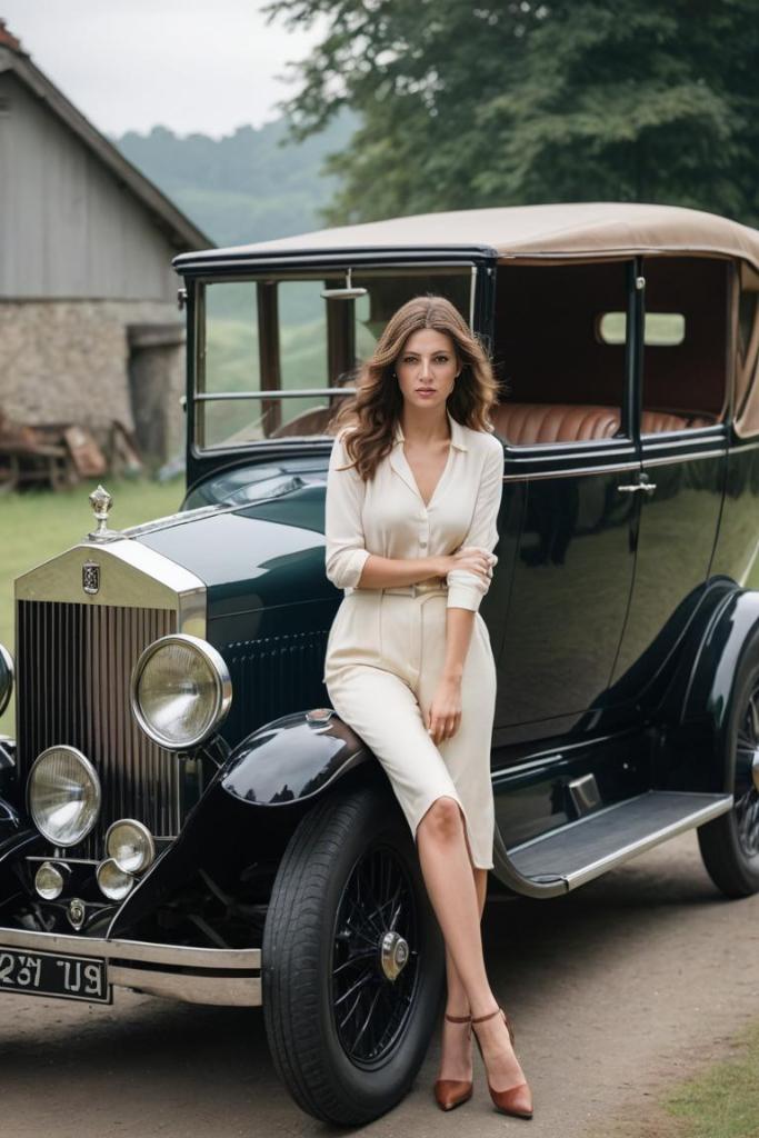magnifica la donna con l’abito bianco e l’auto…
