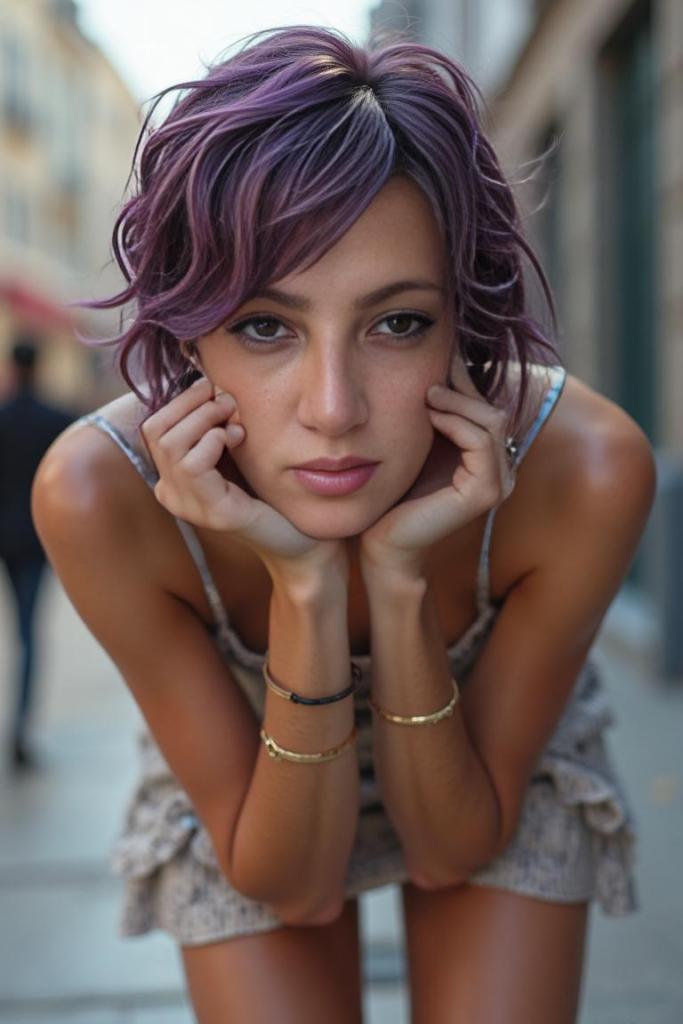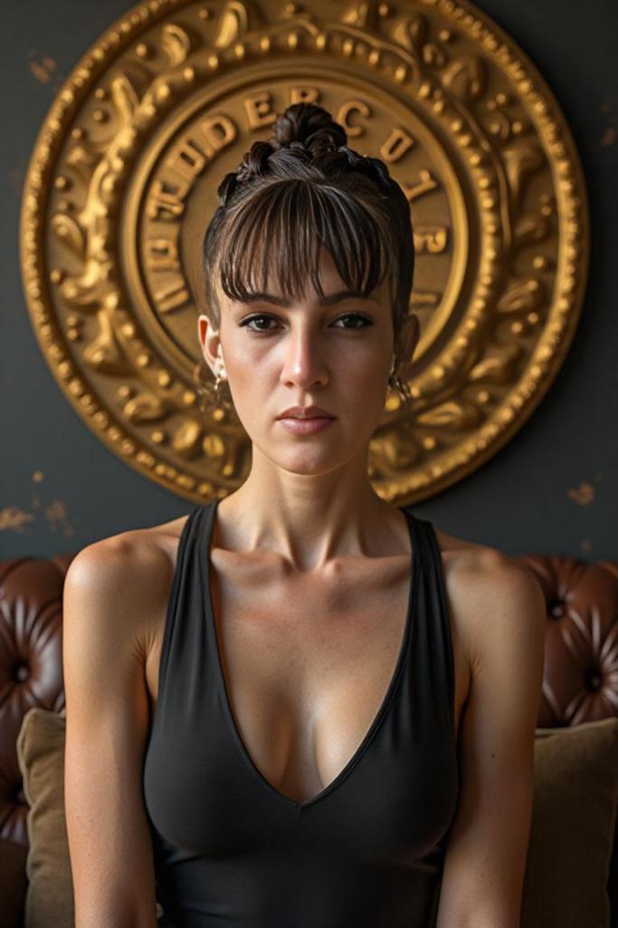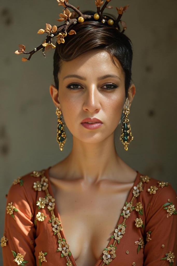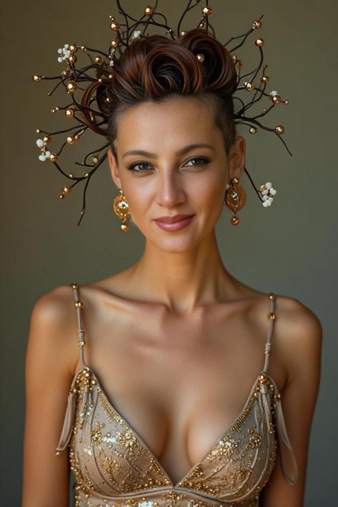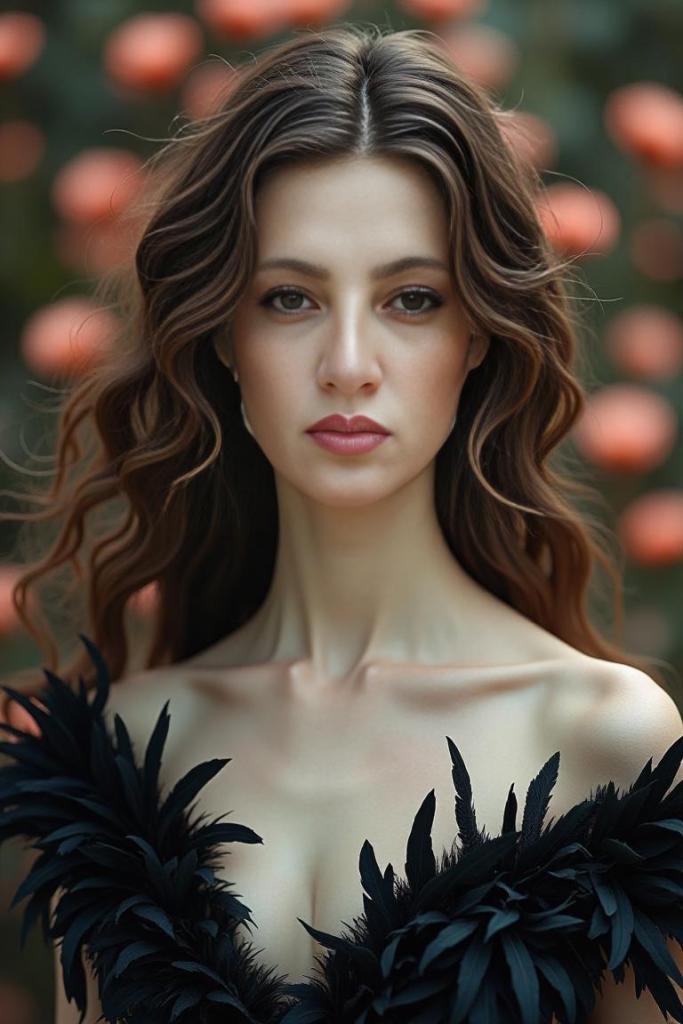 sublime la donna con l’abito blu e il tatuaggio con la piuma…