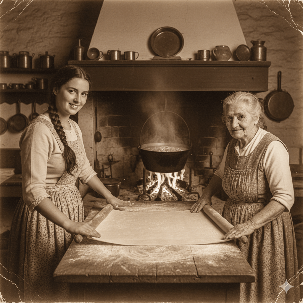 Il tavolo di legno massiccio, segnato da generazioni di battaglie culinarie e risate a crepapelle, era il palcoscenico. Le luci erano le lampade a petrolio e i raggi di sole che entravano dalle finestre, e le attrici principali erano lei, Elvira, e le sue figlie, Ada e Lucia. Indossavano grembiuli inamidati, le mani forti e sapienti, pronte a trasformare semplici doni della terra in pura magia.